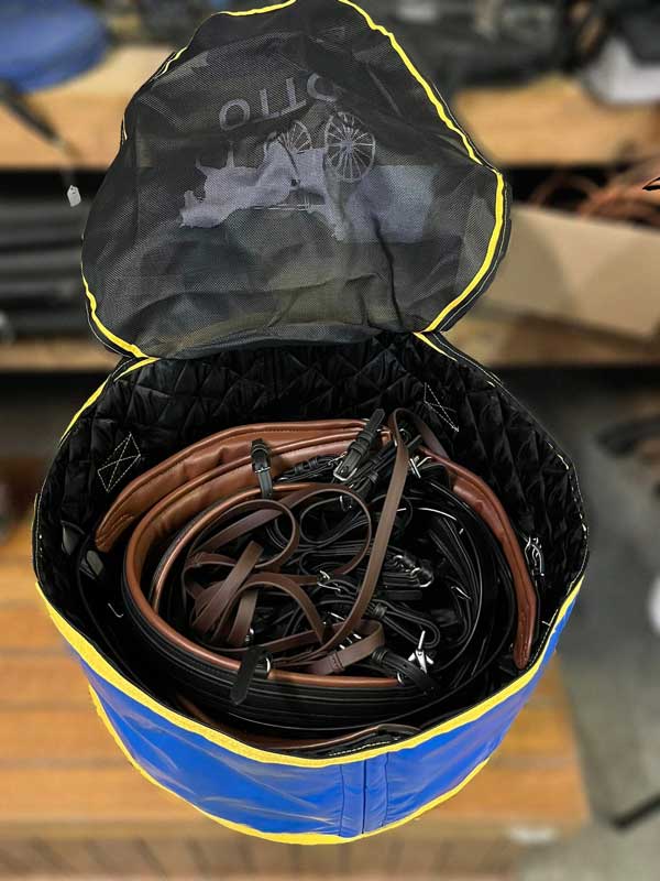 Less bulky than a suitcase and sturdier than the bags supplied with regular synthetic harness. Black Mesh top to allow ventilation (no mould). Strong PVC with double zipper closure. Internal ties to secure your harness.