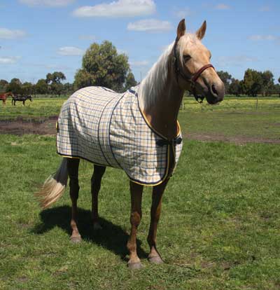 This rug is made from quality Australian wool. Not only a very attractive rug but warm and cosy as well. Classically double bound in gold and navy trim is standard but this rug can be made with trim colours of your choice. Strong webbing leg straps with quick release fittings, matching surcingle and pvc front fittings are all standard.