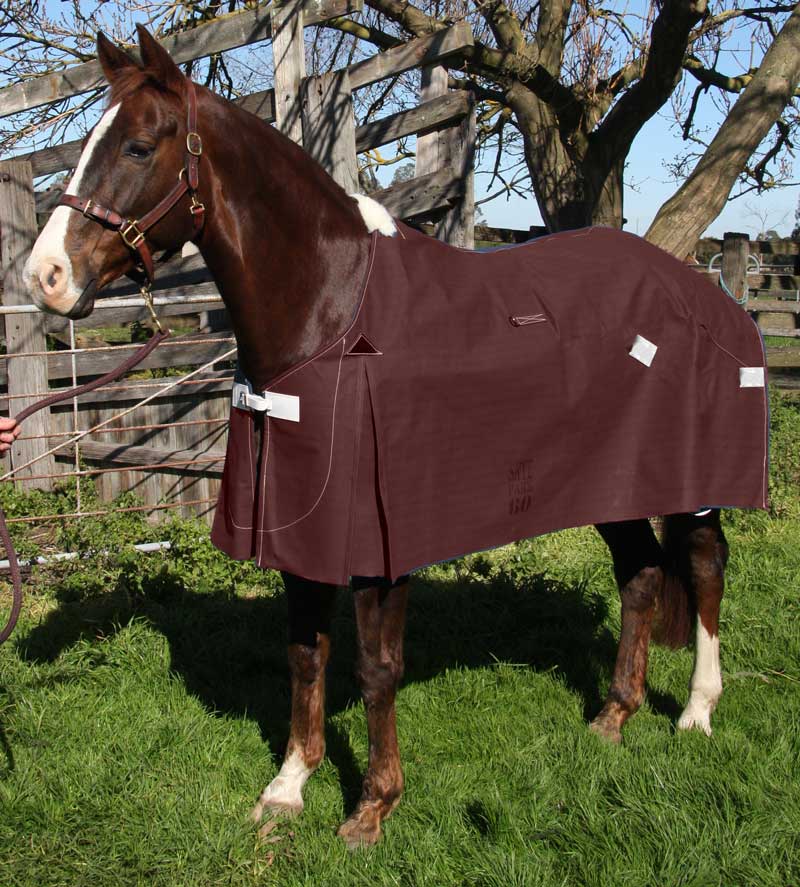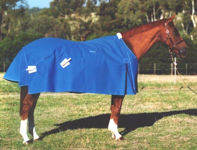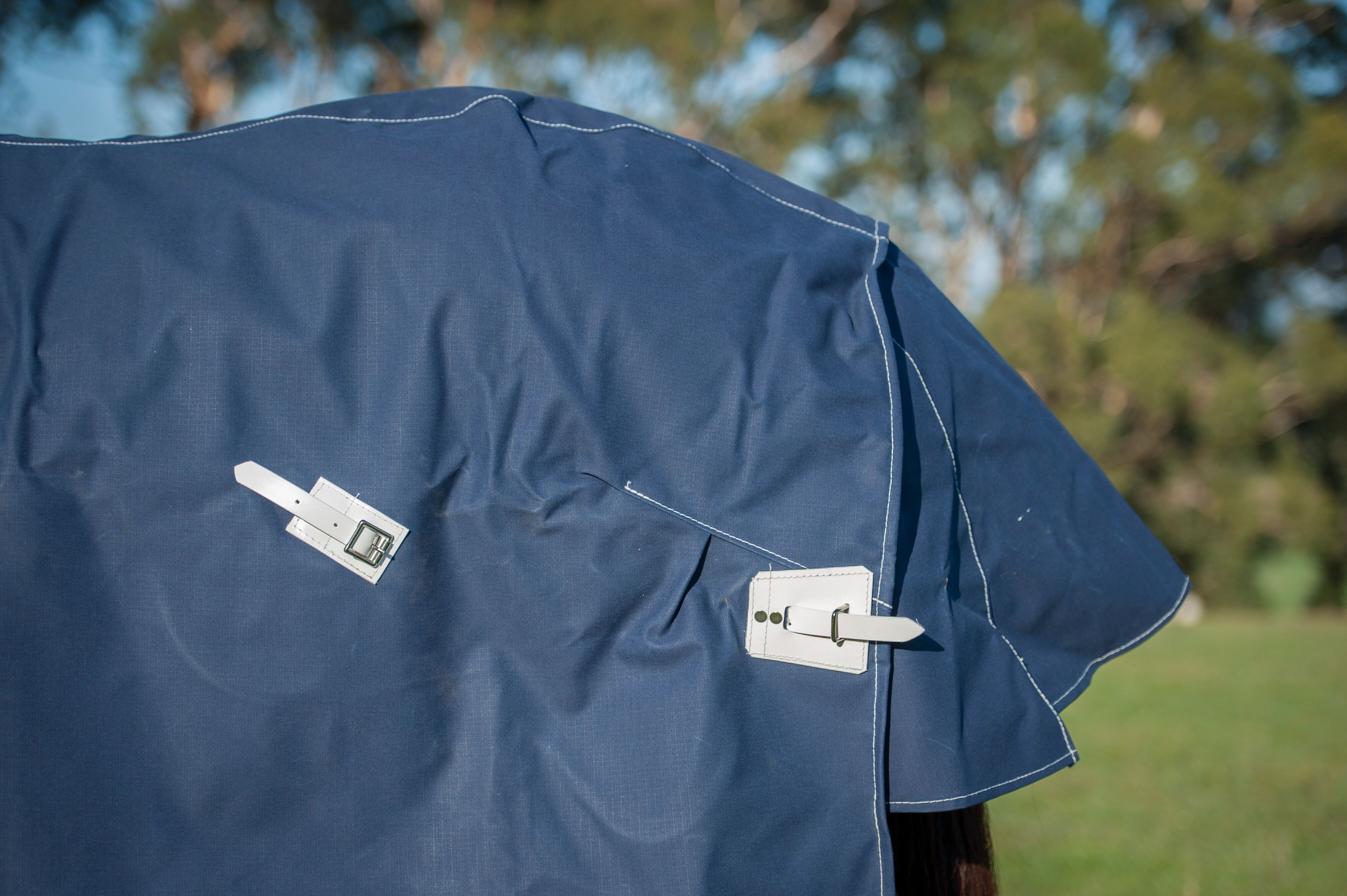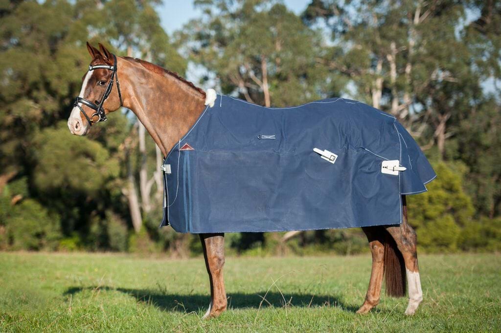 When the threads that are used to weave canvas are spunmost Poly/Cotton canvas materials are blended and spun into a thread, similar to what you imagine a spinning wheel creating. Core Spun canvas is cotton pulp spun around a polyester thread core. These threads are then tightly woven to create a very tough waterproof material. The advantage of this to our Elleet horse rug is the strength that this polyester thread gives the canvas without extra weight and thickness of an 18 or 22oz, and that the cotton around the core expands and gives better waterproofing while still maintaining excellent breathability.